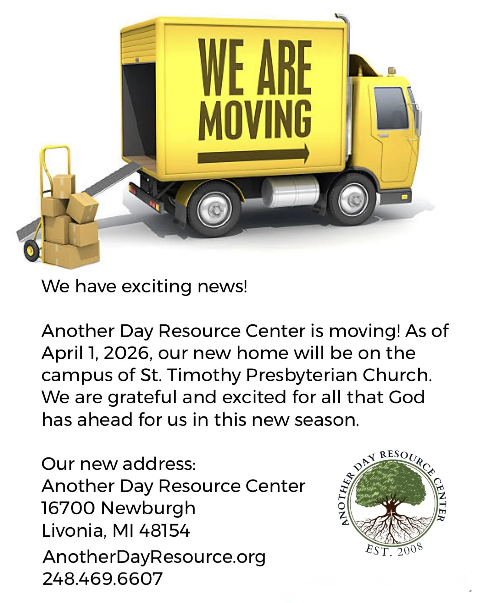 Founded in 2008, Another Day Resource Center was birthed out of a desire to meet the needs of those around us in practical ways – from a Christ-centered perspective.