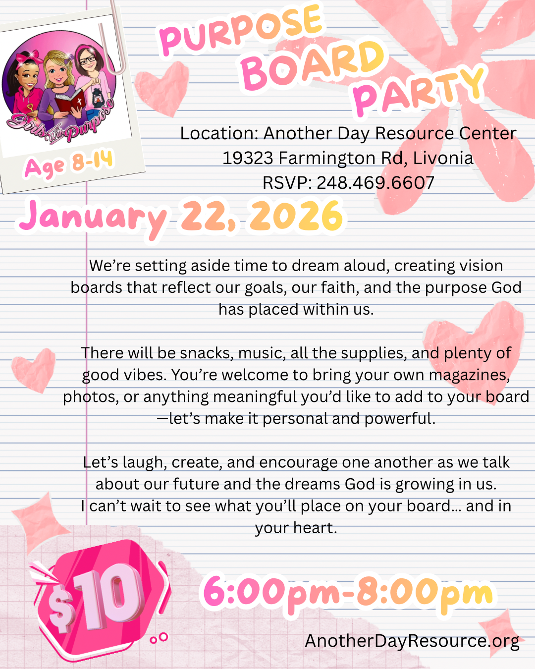We are excited to offer our Girls With Purpose retreat for girls ages 8-14 this coming in March. We will be nestled in the River Hawk lodge at Proud Lake in Wixom, Michigan. This will be a weekend filled with making memories and lasting friendships. The girls will be busy crafting, playing games and winning prizes, learning through focused Bible lessons, outdoor adventure and more. We also will be providing meals and a GWP T-shirt to every girl. We are excited to equip these girls with the tools they need to help them unlock their calling and God given gifts on their life.