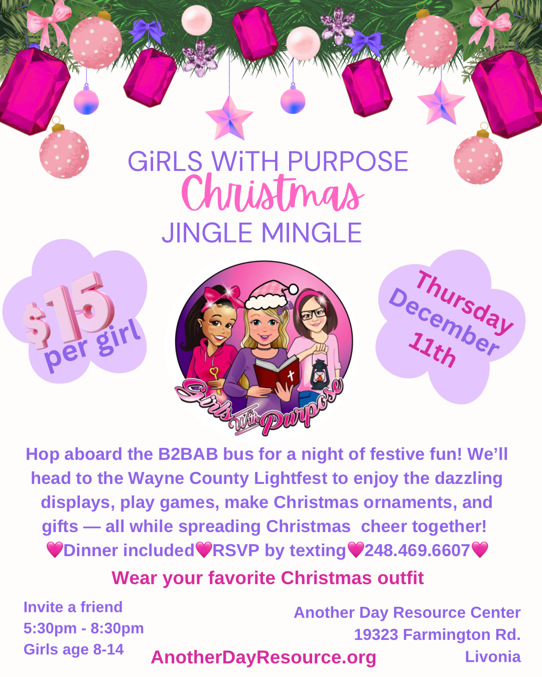 Girls with Purpose is a Christ-centered mentoring program focused on helping girls live a purposeful life by having a personal relationship with Jesus Christ. Through fun and interactive Biblical devotions, games, personal reflection, crafts and more, Girls with Purpose teaches that God loves beyond measure and has a Divine purpose for their lives.